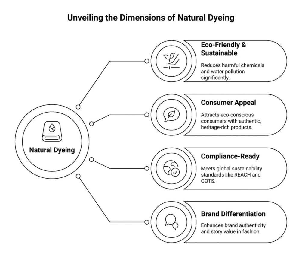 Natural dyes go beyond colour. They tell a story of responsibility. Free from harmful chemicals, they protect our water and our world. They resonate with today’s eco-conscious consumers, meet strict global standards like REACH and GOTS, and give your brand an edge with authenticity, heritage, and purpose woven into every thread.